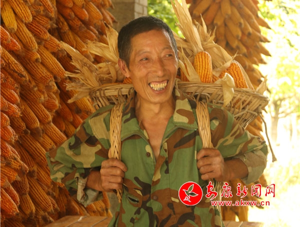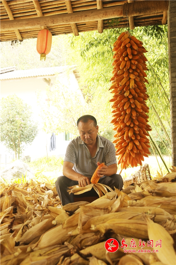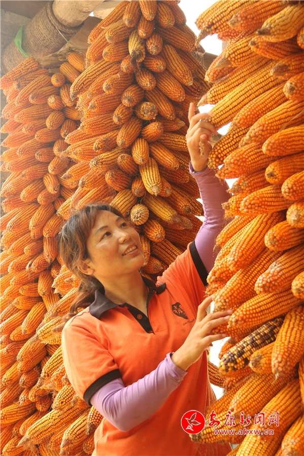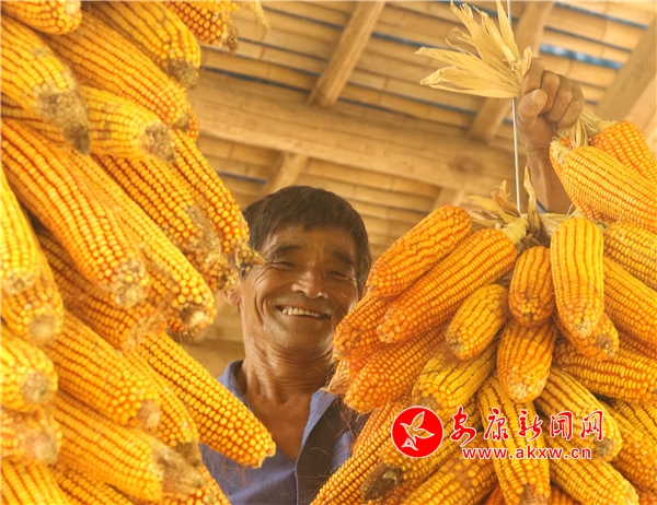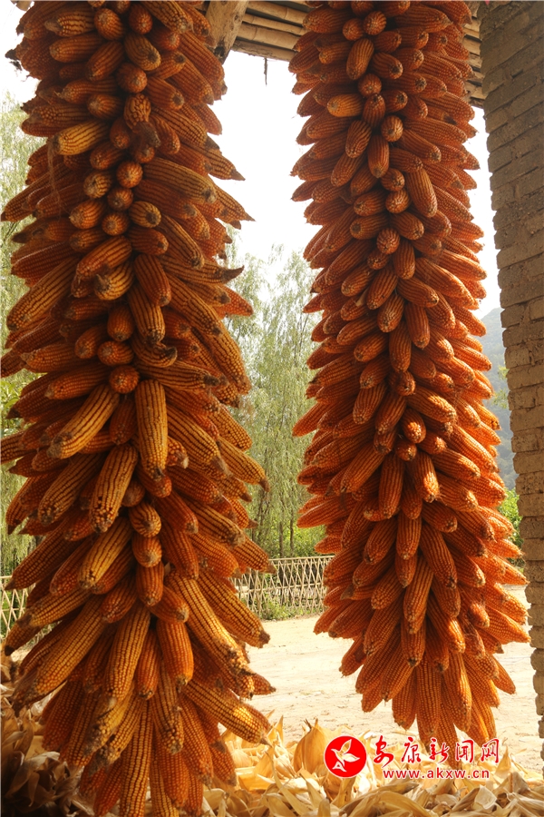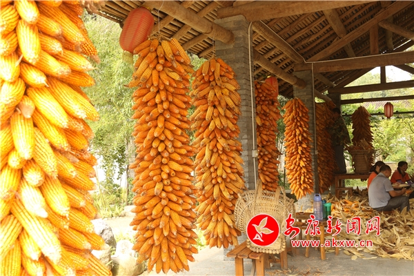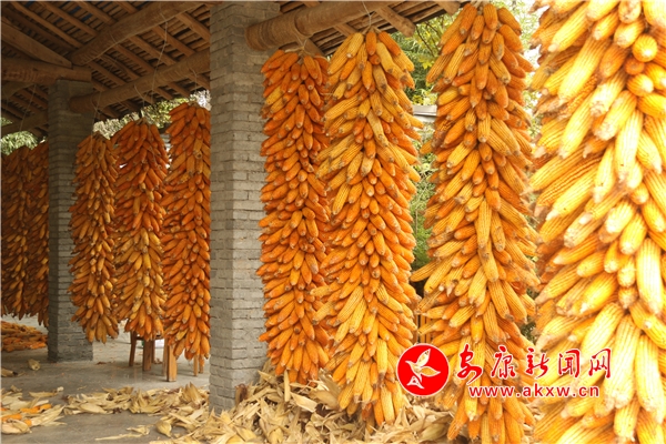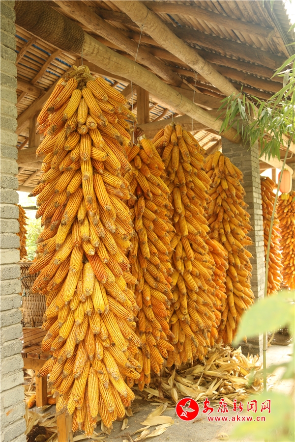 辛勞了大半年的村民,面對(duì)掛滿庭院的金色玉米,掩不住內(nèi)心豐收的喜悅和滿意的笑容。