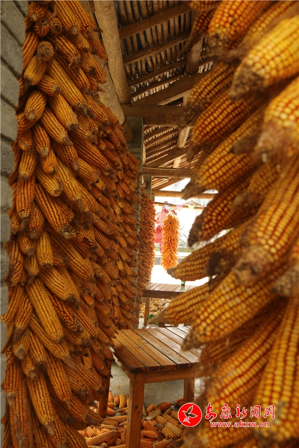 黃澄澄的玉米掛滿房前屋后。記者將這一場(chǎng)景迅疾抓拍,成就了“金秋豐收季”又一作品。