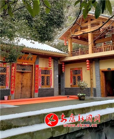 紅屋檐、紅格窗、紅木門、紅楹聯(lián)、紅地毯,還有那懸掛在屋頂上隨風(fēng)舞動的紅燈籠,在瑟瑟寒風(fēng)和茫茫白雪中,才顯其妖嬈展姿。這里,是紅與白色澤、熱與冷色溫的匯聚。紅,是一枝梅,是數(shù)盞燈,是萬家火,是山里人熱騰騰好日子的主色調(diào)……