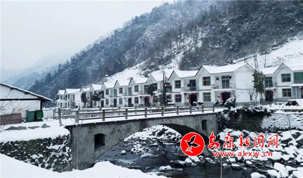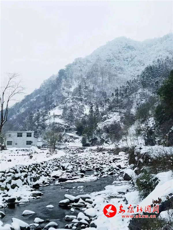 愈往深山走去,愈是銀裝素裹。發(fā)如雪,天作襯。色彩在這里失去了顏色,整個世界只剩下黑與白的構(gòu)圖。山澗中露出的黑巖,連綿著,將青絲的線條起伏蜿蜒地勾勒而出。山腳下一排排整齊的村民安置房,已顯出冬眠酣睡的樣子。樹林里帶著一層朦朧,在群山連綿中起伏著,為這雪天獻(xiàn)上了一幅絕美的水墨畫卷,也更增加了幾分神秘。