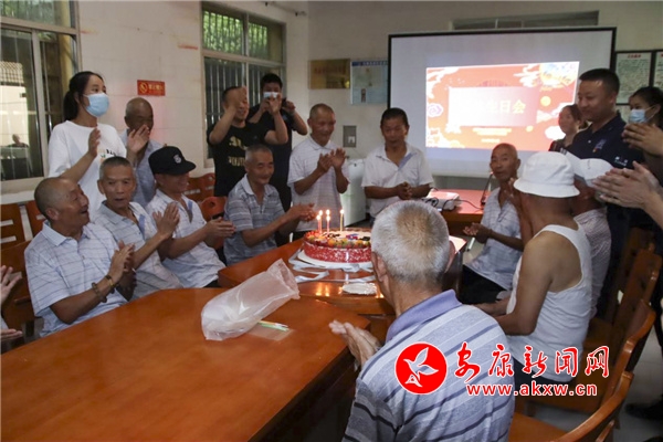 活動現(xiàn)場,他們?yōu)槔先藗兯腿ヅD獭⒌V泉水、牙膏等生活用品,宣講防疫小知識,并為11位老人集體慶生,為他們精心準備了生日蛋糕和禮品。老人們圍桌而坐,一起唱生日歌,現(xiàn)場其樂融融。