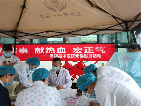 為積極響應(yīng)無(wú)償獻(xiàn)血號(hào)召,10月15日,漢陰縣中醫(yī)醫(yī)院動(dòng)員廣大干部和群眾參與無(wú)償獻(xiàn)血獻(xiàn)愛(ài)心,大家踴躍報(bào)名,半天時(shí)間就有40人獻(xiàn)血,獻(xiàn)血量共計(jì)12200毫升。