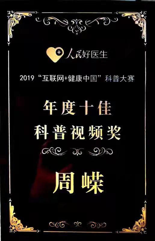 2020年 獲第二屆“互聯網+健康中國”科普大賽“科普達人獎”