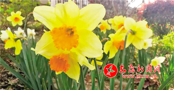 而洋水仙發(fā)芽比郁金香更早,一些調(diào)皮的小朋友甚至在這幾天就已經(jīng)冒出頭來窺探世界了。當(dāng)它長到兩寸高時,你就能看見它那比葉片更厚而顏色偏淺的花蕾,它的花蕾和葉片在接下來的兩個月幾乎是同時長高,最后,豎直的花蕾漸漸彎曲成與葉片成直角,花兒就會在未來的幾天綻放。