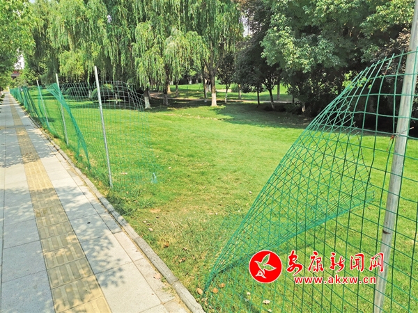 清明節(jié)期間,安康高新區(qū)運(yùn)動公園內(nèi)5處圍網(wǎng)被游人破壞。(王琳 攝)
