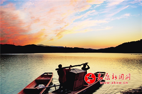 景隨人動,瀛湖最美的季節(jié)還不在春天。深秋時節(jié),電站大壩下閘蓄水,水位上升,湖面開闊,山啊、樹啊宛立在水中,道不出的萬種風情。水色如煙,光影朦朧,島嶼羅列,山水相依相親,如夢似幻。此時大自然早已少了春的細賦描繪,已是濃墨重潑的巨幅寫意,山上樹葉五彩斑斕,深紅、橙紅、橙黃、明黃、碧綠、墨綠,層層疊疊、深淺不一,把大山裝扮得分外妖嬈,哪里還有“枯藤老樹昏鴉”的凄涼景象?