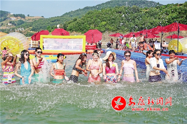 瀛湖的初夏,萬千變化。清晨,山和水還在夢中酣睡,一輪紅日從東面湖的盡頭沐浴而出,爬上山頭,霞光染紅了湖水,染紅了天空,湖面顯得更加清幽。傍晚,落日熔金,給群山鍍了一層金邊。此時,群鳥歸隱,群魚入眠。江風攪動湖水,湖面波光瀲滟,明麗動人。晚歸的漁民搖著一葉扁舟在寂靜的湖面上飄蕩,成為畫中最美的風景。習習涼風也吹散了白日的暑熱,舒適愜意,是休閑避暑的好去處。若遇雨天,天地間扯起絲絲銀線,水天一色,如煙如霧,籠罩在瀛湖上空。那若有若無輕煙一樣的雨霧輕盈地飄蕩在湖面上、群山間,翠屏山莊上的亭臺水榭、湖心碧螺島上的螺峰塔,全都沐浴在水蒙蒙的輕紗中,如夢似幻?!拔魅角鞍橈w,桃花流水鱖魚肥。青箬笠,綠蓑衣,斜風細雨不須歸。”此時,湖里的魚兒成群結隊地游出水面透氣,正是釣魚的最佳時機,湖邊不少垂釣愛好者正興致勃勃地冒雨釣魚,完全不顧雨已打濕了衣服。湖中,一葉葉漁舟和游船在雨中漫游,幽幽絲竹之聲從游船中飄出,像游走在煙雨迷蒙的江南水鄉(xiāng)。