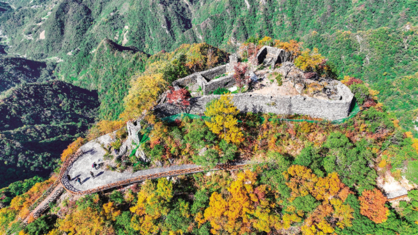 全勝寨位于我市嵐皋縣民主鎮(zhèn),是一個隱于群山、建于絕壁之上、保存完整的古山寨群落。古寨遺存的多處石砌城墻和戰(zhàn)壕錯落有致,延綿數(shù)公里,為秦巴山區(qū)所罕見。據(jù)當(dāng)?shù)厥分居涊d,此寨始建于明末,是當(dāng)?shù)孛癖姙槎惚軕?zhàn)亂而建。因山寨抵御多次外來侵?jǐn)_,屢獲全勝,故名“全勝寨”。這里平均海拔1300至1500米,是陜西省第七批文物保護單位,也是目前我省保存較為完好、歷史戰(zhàn)績輝煌的寨堡,同時也是重要的革命歷史舊址。對于研究明、清、民國時期嵐皋歷史文化和寨堡建筑具有重要價值。(袁法 攝)