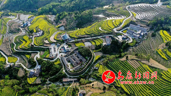 三三兩兩的房屋,就掩映在層疊的菜花梯田間,潔白的墻面,黛青的屋瓦,金燦的菜花,有種遺世獨立的靜美,塵世的喧囂一下子就遠了。尋一條鄉(xiāng)野小徑,步入茫?;ㄌ镩g,不時有蜂蝶流連,孩童嬉鬧,農人牽著牛自不遠的長橋上悠悠走過,處處都流淌著鄉(xiāng)村田園的盎然春意。
