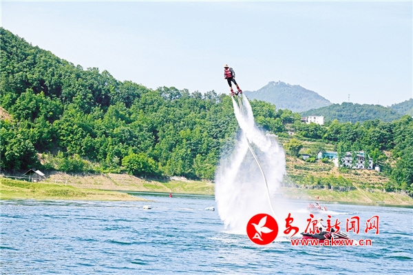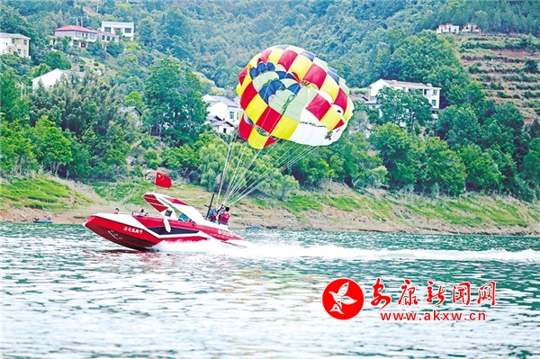 休閑勝地翠屏島,最大的亮點(diǎn)是玉清橋的彩虹瀑布,游客從橋下經(jīng)過,感受“瀛湖之水天上來”的曼妙,這也是瀛湖為游客送上的初夏第一絲清涼。橋頭幸福的天梯、鳥巢,成為排隊(duì)拍照的絕佳點(diǎn)位。運(yùn)動(dòng)場(chǎng)上,滾鐵環(huán)、射箭、投壺、打籃球,讓游客流連忘返。兒童樂園旁,微型爆米花機(jī)勾起了孩子們參與的興趣,彩繪激發(fā)了孩子們的繪畫熱情。瀛湖水上嘉年華,精彩刺激的水上項(xiàng)目帶給游客酣暢的體驗(yàn),游客紛紛直呼“過癮”!
