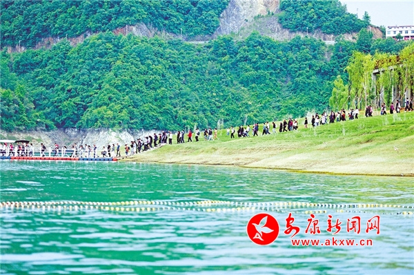 游客抵達(dá)瀛湖景區(qū),在工作人員的疏導(dǎo)下,有序登船,穿好救生衣后,向著碧波漣漪、白云萬里進(jìn)發(fā),這樣游湖,就是一幅絕美的畫卷。
