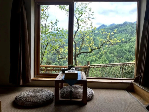 南山云見民宿共有11個(gè)陜南民居,集茶舍、住宿、餐廳、書院、美術(shù)館為一體,穿梭于鳳凰山中的康養(yǎng)文化健身步道,宛如一條絲線,串聯(lián)了大南溝的龍?zhí)丁堧[谷、凈春山、講經(jīng)臺(tái)、逍遙石、明月寺、南山云見民宿等景點(diǎn)。