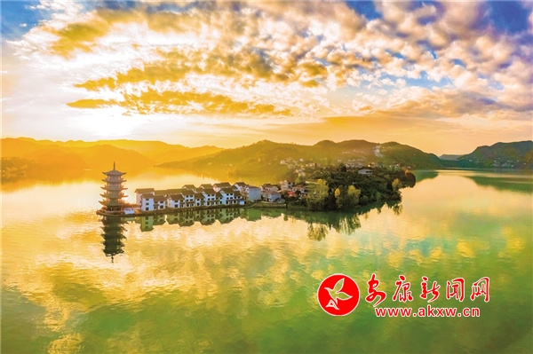 在瀛湖,冬日里的暖陽(yáng)往往午后才露出羞澀的笑臉。聽說(shuō)清泉老碼頭新打造了一座古香古色的小鎮(zhèn),與四周的群山和這里的大湖面渾然一體,美麗壯觀。11月下旬的一個(gè)下午,待云霧慢慢散開,我和紀(jì)平、世軍驅(qū)車來(lái)到清泉老碼頭。過(guò)去,這個(gè)碼頭是跨漢江通往玉嵐的必經(jīng)之地,也是嵐河與漢江的交匯處?;鹗瘞r電站大壩蓄水后,這里呈現(xiàn)出瀛湖最開闊的湖面,螺峰島、翠屏島、玉興島、五龍山等形成了四面環(huán)水的島嶼,清泉、玉嵐、橋興、關(guān)埡子、紅巖堡、南溪溝、任家灣等地縱橫交錯(cuò),形成了諸多形態(tài)各異的半島。水位升至最高時(shí),“腰帶”消失,山與水渾然一體,與綿延的山勢(shì)溫柔相依。此時(shí)山頭已是草木蕭疏,只剩下光禿禿的樹枝了,而瀛湖兩岸卻秋意正濃,山坡上的紅黃綠像是被打碎了的調(diào)色盤,洋洋灑灑,帶著幾分溫潤(rùn)嵌入山坡、映入湖中,在藍(lán)天白云的映襯下,宛如一個(gè)童話世界。忽然,一艘游船駛過(guò),五彩斑斕的倒影頃刻被攪拌成彩色綢緞,任其在湖中翻滾飄蕩。夕陽(yáng)劃過(guò)山頭的那一刻,紅霞漫天,湖面被染成橘色之后,一片寂靜。只有此時(shí),山之沉穩(wěn)端莊和水之嫵媚溫柔交融一體,呈現(xiàn)出無(wú)與倫比的美。我想,這不正是我想要的那幅極具詩(shī)情畫意的場(chǎng)景嗎?有感: