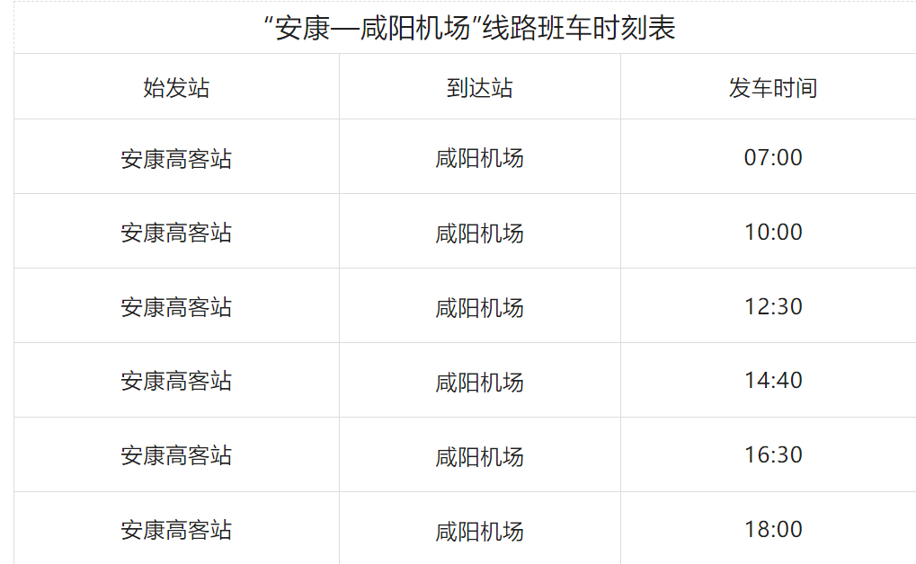 明日起,“安康—咸陽機(jī)場”客運線路發(fā)車時間調(diào)整