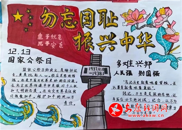 為緬懷抗戰(zhàn)先烈的英雄事跡,牢記侵略戰(zhàn)爭給中國人民造成的深重災(zāi)難,增強少年兒童的社會責(zé)任感和使命感,12月13日,曾家初級中學(xué)組織開展了以“勿忘國恥 吾輩自強”為主題的國家公祭日主題宣傳教育活動。(圖文/吳金蕾)?