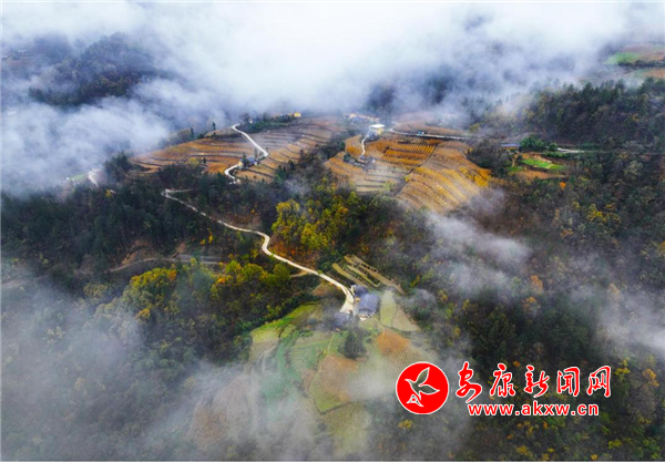 大湖溪位于鎮(zhèn)坪縣城關(guān)鎮(zhèn)友誼村,距離縣城大約半小時車程。沿207省道順南江河而下,穿過南江湖大壩就到了谷口。一條嶄新的柏油馬路沿溪流伸向大山深處,茂密的森林覆蓋著山巒,星星點點的農(nóng)舍、民宿集群和土地,若隱若現(xiàn)地掩映在云霧繚繞的群山之間,許多保存完整的巴山古老傳統(tǒng)民居石板屋,炊煙裊裊,與淡淡的晨霧相互交織,構(gòu)成了一幅渾然天成的水墨畫卷。放飛手中的無人機,我貪婪地捕捉這一幅幅夢幻般的景致。