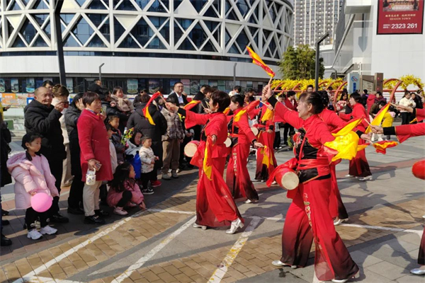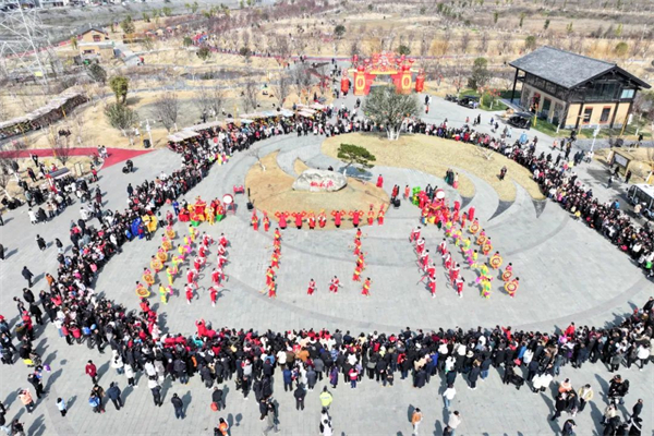 豐收大秧歌、龍騰腰鼓隊、喜慶蓮響、彩船、花轎大聯(lián)歡、社火、小場子戲等精彩的傳統(tǒng)民俗節(jié)目在桃花源相繼上演。新穎的編排、精彩的表演,令現(xiàn)場游客大飽眼福,叫好聲、喝彩聲此起彼伏。當天近25000余名市民游客前往桃花源觀看表演、打卡游園,處處洋溢著“歡歡喜喜過大年”的節(jié)日氣氛。