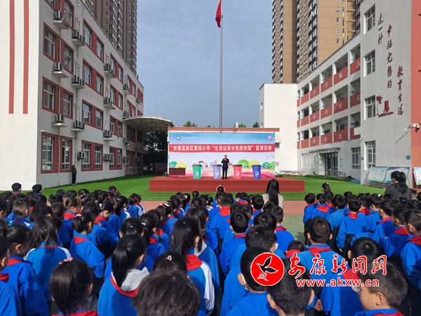 本網(wǎng)訊(通訊員 王宗濤)“同學(xué)們,我們是環(huán)境保護(hù)小天使,我們要讓山更青,水更綠,天更藍(lán),我們生活的家園更美麗!我們應(yīng)該養(yǎng)成垃圾分類的好習(xí)慣?!?月9日上午,春陽(yáng)燦爛的安康高新區(qū)第四小學(xué)的操場(chǎng)上,生活垃圾分類“進(jìn)校園”宣講活動(dòng)火熱進(jìn)行中。