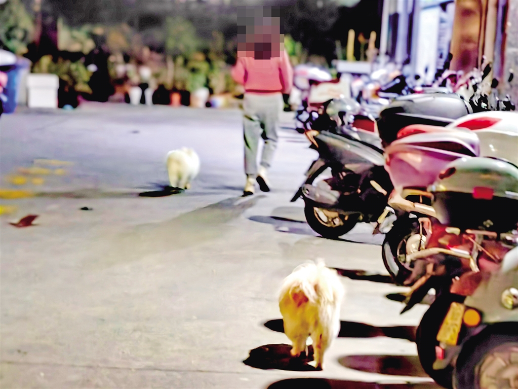 4月8日,有市民在安康中心城區(qū)巴山西路人行道不牽繩遛狗。(鄭時(shí)根 攝)