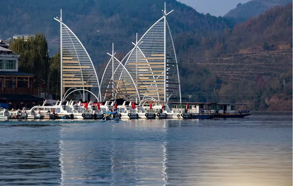 初到安康市漢濱區(qū)流水鎮(zhèn),放眼望去,青石鋪就的街道,頗具古風(fēng)的酒肆店面,令人耳目一新。緩步前行,步行百余步,及至碼頭,豁然開朗,碧水蜿蜒于青山之間,輕舟搖曳,漸行漸遠(yuǎn),不禁想起唐代詩人李白的那句“孤帆遠(yuǎn)影碧空盡,唯見長江天際流”,飽具詩情畫意。
