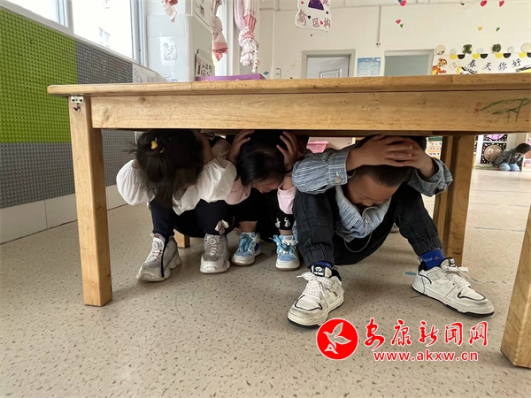 隨著室內(nèi)避震警報響起,防震演練正式開始,老師們迅速啟動《防震疏散演練應(yīng)急預(yù)案》,各班教師立即引導(dǎo)幼兒盡量躲避在室內(nèi)墻根、墻角或床、桌等相對堅硬的家具與三角區(qū)避震空間避險,引導(dǎo)幼兒身體彎曲,降低身體重心,盡最大努力保護好頭部。逃生疏散中老師不斷提醒幼兒們不要擁擠,手保護頭部、彎腰,迅速且有序沿著指定疏散路線撤離到安全區(qū)域,同時檢查是否有掉隊的孩子,確保每位幼兒安全撤離。