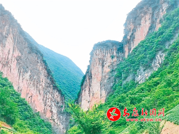 白巖坡就是大巴山的杰作,地質(zhì)斷層形成的兩座山峰如同兩扇大門,擋在通往巴山的路途上,展示著什么是“一夫當(dāng)關(guān),萬(wàn)夫莫開(kāi)”。歲月的風(fēng)霜雪雨、日曬夜露將山體侵染成灰白相間的印跡,像極了牛角上的紋路,生命力極強(qiáng)的花草樹(shù)木在懸崖峭壁上瘋狂生長(zhǎng),一條不知趣的小溪硬是從兩山夾峙中拼命擠過(guò),切出一道深澗,絮絮叨叨著“水可穿石”。從巖石里、溶洞中、草木根沁出的泉水,爭(zhēng)先恐后地竄進(jìn)小溪,歡歌嬉戲。停車駐足,一股清新空氣不打招呼地沁入心脾,全身舒坦。抬頭仰望,一線天里寫滿花草樹(shù)木、藍(lán)天白云、風(fēng)花雪月,讓人心曠神怡,仿佛到了世外桃源。