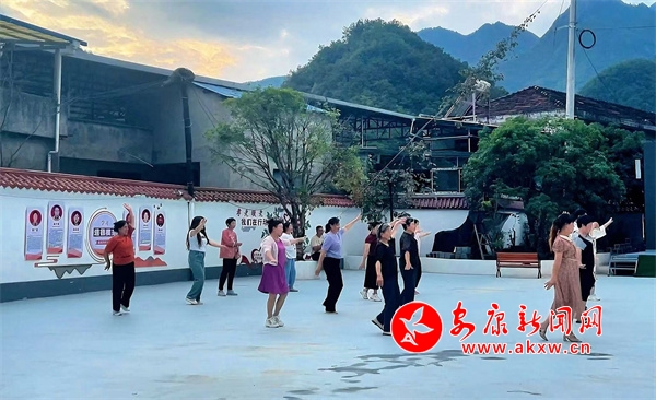 “123、223、323,把手伸直……”,在文化活動廣場的大舞臺上,中壩村舞蹈協會會長徐開珍正在耐心指導村民們晨練。
