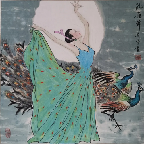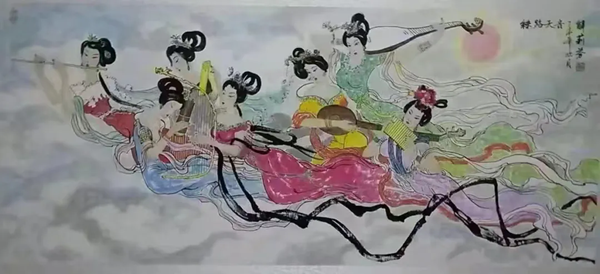 解大姐是陜北人,性格開朗、直率,說(shuō)話中間或帶出一些濃重的陜北口音。雖說(shuō)她主業(yè)從于政界,但她微笑的背后卻潛藏著不可掩飾的藝術(shù)天賦,揮發(fā)著令人奪目的藝術(shù)才情。繁雜的政務(wù)工作之余,她創(chuàng)作不輟,堅(jiān)持不懈,居然在多個(gè)藝術(shù)門類收獲頗豐,好評(píng)連連。寫小說(shuō),她寫出幾十萬(wàn)字的長(zhǎng)篇出版發(fā)行;寫劇本,竟拍成了電影予以公映;學(xué)國(guó)畫,亦讓藝術(shù)界的大咖贊口不絕。我雖不才,空有浮名,但深耕藝界多年,對(duì)于其中的好賴還能分出一二。我感到,一個(gè)人的人品和藝品基本一致,解大姐的藝術(shù),是扎根于她熟悉的陜北大地的藝術(shù),是生長(zhǎng)在山峁峁上經(jīng)歷風(fēng)霜雨雪的藝術(shù),就像那陜北倔強(qiáng)的疙瘩柳,散發(fā)著對(duì)土地對(duì)生活的親近和熱情,對(duì)人生價(jià)值實(shí)現(xiàn)的不屈和追求??吹剿膰?guó)畫新作,有陜北剪紙等民間藝術(shù)的滋養(yǎng)和影響,真切而樸實(shí)。她的飛天人物系列,泥古而不落窠臼,使我想到疙瘩柳條隨風(fēng)擺動(dòng)的婀娜風(fēng)姿,溫溫潤(rùn)潤(rùn),令人遐思和向往;她的花鳥畫作,使我想到陜北山野一片蒼茫之間,一朵兩朵盛開的山丹丹花,嬌艷得令人不忍觸手;她的山水畫作,又猶如陜北山原上嫩黃的棗花,洋溢著撲面而來(lái)的質(zhì)樸、清新和率真之氣。