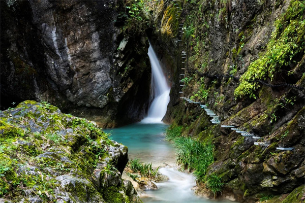正說(shuō)著,老太太風(fēng)塵仆仆地回來(lái)了。交談中我問她有沒有拍幾張瀑布的照片,她說(shuō)拍了很多小視頻和照片。在她的手機(jī)里,我看到了“雁山瀑布”如天馬行空的銀河,優(yōu)雅地在空中舞動(dòng),散發(fā)著靈動(dòng)的清新,讓人心曠神怡;看到了瀑布群如同一幅幅流動(dòng)的畫卷,從高高的崖壁傾瀉而下,水花飛濺,在陽(yáng)光下熠熠生輝,閃爍著晶瑩剔透的光芒;看到了“蓮花石?!豹q如蓮花般綻放于溪谷,奇石林立,溪澗飛流,蒲草蔥郁,蔚為壯觀;看到了“眾石飛泉”宛如銀龍勁舞,飛落碧潭,濺起點(diǎn)點(diǎn)水花,曼妙成躍動(dòng)的精靈,美輪美奐,姿態(tài)萬(wàn)千。