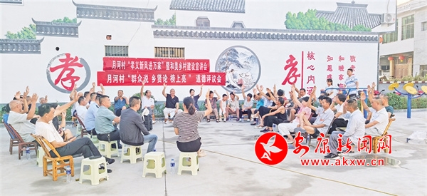 在今年的每一次道德評議會上,月河村干部和鄉(xiāng)賢能人都積極宣講村莊發(fā)展規(guī)劃以及孝善行為的重要性,宣講團成員詳細解讀孝義文化,帶動村民踴躍參與“五美庭院”創(chuàng)建。在此過程中,“說論亮”道德評議制度有效運行;“群眾說”讓大家暢所欲言,把村里的大小事擺到臺面;“鄉(xiāng)賢論”借助鄉(xiāng)賢的智慧與威望分析問題、化解矛盾;“榜上亮”則讓好與壞一目了然,便于群眾監(jiān)督。特別是,為激勵村民見賢思齊,學典型、爭先進、樹文明,月河村利用孝義文化長廊、宣傳欄、道德講堂等載體,把評選出來的道德典型事跡“上榜、上墻”,形成示范引領(lǐng)效應,讓良好道德品質(zhì)看得見、摸得著,進一步激發(fā)村民的主人翁意識,讓移風易俗的觀念深入人心。