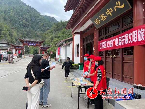為增強(qiáng)游客的文明旅游意識(shí),近日,漢濱區(qū)文旅廣電局組織志愿者們?cè)陔p龍景區(qū)現(xiàn)場(chǎng)向市民游客發(fā)放文明旅游宣傳折頁(yè),宣傳講解文明旅游相關(guān)知識(shí)以及應(yīng)當(dāng)遵循的行為規(guī)范,引導(dǎo)游客有序排隊(duì)游玩。宣傳彩頁(yè)內(nèi)容既包含了安康的歷史文化、自然風(fēng)光介紹,也強(qiáng)調(diào)了保護(hù)環(huán)境等文明旅游具體要求,旨在引導(dǎo)每一位游客成為文明旅游的踐行者和傳播者,從自身做起、從小事做起,共展文明風(fēng)采,共樹(shù)文明形象,共享文明旅游好風(fēng)景。(漢濱區(qū)委宣傳部供圖)?