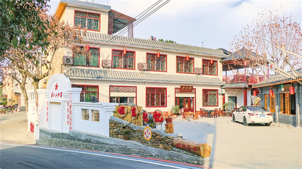 村委會對面,村民詹永斌站在院子里,樂呵呵地向前來探親的侄子們介紹起改造前后的變化?!叭ツ赀@時候,我家側(cè)面還是光禿禿的水泥墻,現(xiàn)在政府有好政策,農(nóng)房改造補貼一萬五,把家里的外墻、屋檐、屋頂全部做了美化,墻面也刷白了,看起來美觀不少?!?/p>