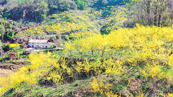 “連翹的葉、花、果具有藥用、食用、茶飲、美容等功效,而且耐寒、耐旱、耐貧瘠?!标R永軍介紹,連翹早春先花后葉,花開(kāi)香氣淡艷,滿枝金黃,艷麗可愛(ài),是早春優(yōu)良觀花灌木,一般種植2至3年才能受益。