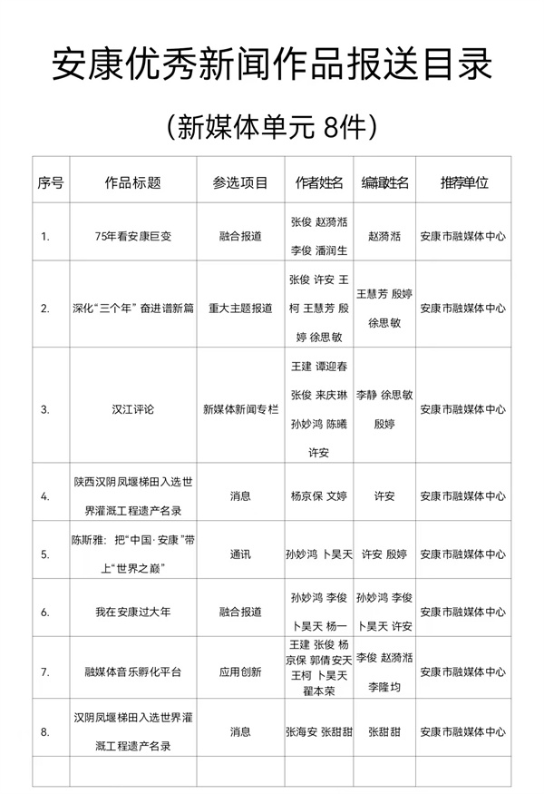 安康市融媒體中心關(guān)于報(bào)送2024年度安康優(yōu)秀新聞作品的公示