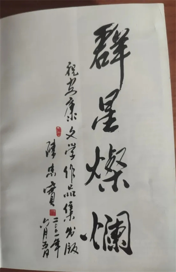 2001年5月下旬,我主編的《安康作家優(yōu)秀作品選》基本成型,編錄的有80多萬字,包括本市的中國作協(xié)、省作協(xié)、市作協(xié)會員180多人,原稿厚厚的一尺多高一墩了。出版前我想得有個壓軸的,便把一大包作品復(fù)印件不打招呼、就徑直寄給陳忠實,附信說請他寫個序。大約一個星期就收到陳忠實回信,說我做了件好事、有的地市還沒有這樣弄過;說他太忙,作品倒是大概看了、安康他知道的作家都在里面,還行。但是太忙、實在沒有時間再仔細(xì)看,也就不好寫序,務(wù)必諒解……末了,那寄給他的復(fù)印件都沒退,倒是給寄來了橫的、豎的,長短大小不一的、毛筆書寫在宣紙上的幾種形式的題詞“群星燦爛——祝安康文學(xué)作品集出版 陳忠實 二00一年六月五日”,每張題詞的宣紙還折疊得棱角分明、上下對稱。收到后,我的心里重騰騰的,想陳老漢下的功夫不小哩,只怕不比花費(fèi)一兩個小時、走馬觀花地寫個洋洋灑灑的三兩千字的序省事!《安康作家優(yōu)秀作品選》當(dāng)年出版后,有了反響、也有了結(jié)余。我專門委托在西安一雜志社打工的本土青年作者洪曉晴去西安找陳忠實,送上3本書、并送上500元潤筆費(fèi)。不料、陳忠實見了書高興,但堅決不收這500元,并又給我來了一封信,解釋說文人都窮、出個書不容易哩!最后,信的結(jié)尾,陳忠實又幾乎是批評我,說我得有自己的創(chuàng)作哩!看來,陳忠實固然支持和欣賞編輯這種區(qū)域性系統(tǒng)性的作品集,但他更希望看到文學(xué)作者創(chuàng)作出具有個體生命體驗及其獨特感悟的作品,文學(xué)的靈魂和生命,畢竟是創(chuàng)造。