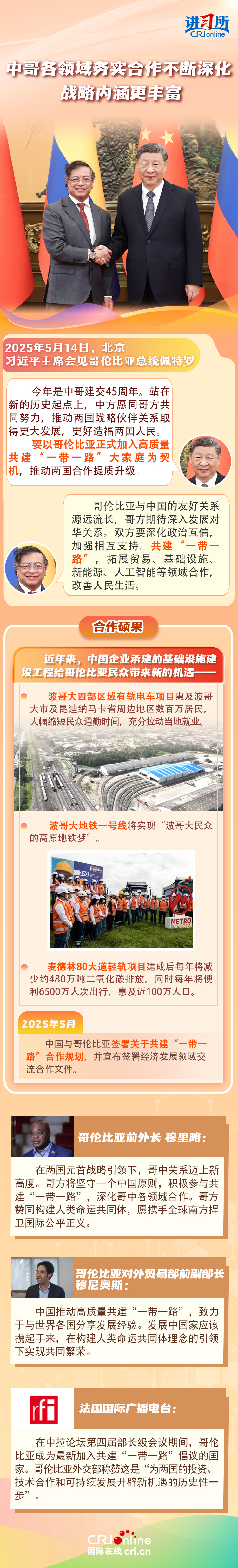 習(xí)近平主席在這三場(chǎng)雙邊外事活動(dòng)中,均提到了共建“一帶一路”倡議:“深化‘一帶一路’倡議同巴西發(fā)展戰(zhàn)略有效對(duì)接”“要以哥倫比亞正式加入高質(zhì)量共建‘一帶一路’大家庭為契機(jī),推動(dòng)兩國(guó)合作提質(zhì)升級(jí)”“雙方要落實(shí)好共建‘一帶一路’合作規(guī)劃”……10多年來(lái),在習(xí)近平主席親自擘畫和推動(dòng)下,共建“一帶一路”從中國(guó)倡議走向國(guó)際實(shí)踐,取得了實(shí)打?qū)?、沉甸甸的成就?/p>