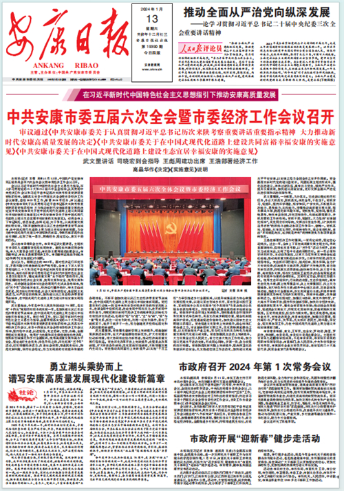 (2024年1月13日安康日?qǐng)?bào)01版報(bào)道“中共安康市委五屆六次全會(huì)暨市委經(jīng)濟(jì)工作會(huì)議召開(kāi)”)