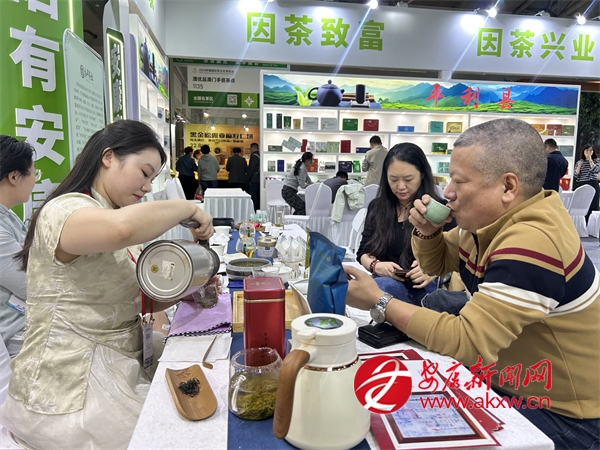 展會現(xiàn)場,安康富硒茶展區(qū)人頭攢動、茶香四溢。茶企展位前,工作人員嫻熟地沖泡茶湯,濃郁的茶香引得市民、客商紛紛駐足品茗?!鞍部等ミ^很多次,之前也喝過安康茶,喝起來清香,醇厚回甘,香味兒足,飲后口腔內(nèi)留有持久的甘甜,讓人回味無窮?!睘豸斈君R石先生端起茶杯細細品啜,臉上露出贊許的笑容。