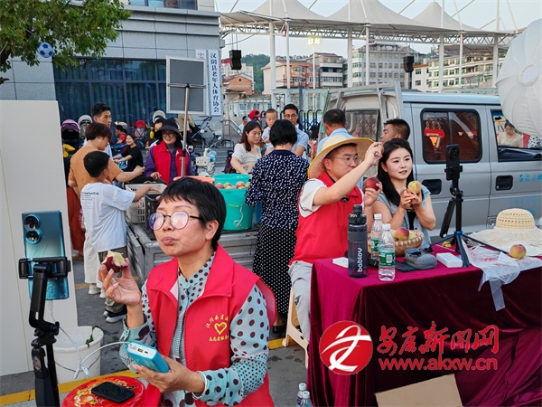 △ 漢陰縣蒲溪鎮(zhèn)第一書(shū)記組團(tuán)在縣村超比賽場(chǎng)地外直播賣桃子,累計(jì)幫銷紅桃2.8萬(wàn)余斤。
