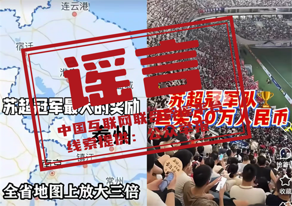辟謠:地圖放大三個(gè)字號(hào)?獎(jiǎng)金五十萬?這些網(wǎng)傳蘇超冠軍隊(duì)獎(jiǎng)勵(lì)都是假的!
