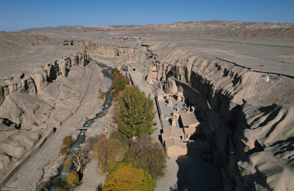 ??位于甘肅瓜州縣的榆林窟(2025年10月31日攝,無(wú)人機(jī)照片)。
