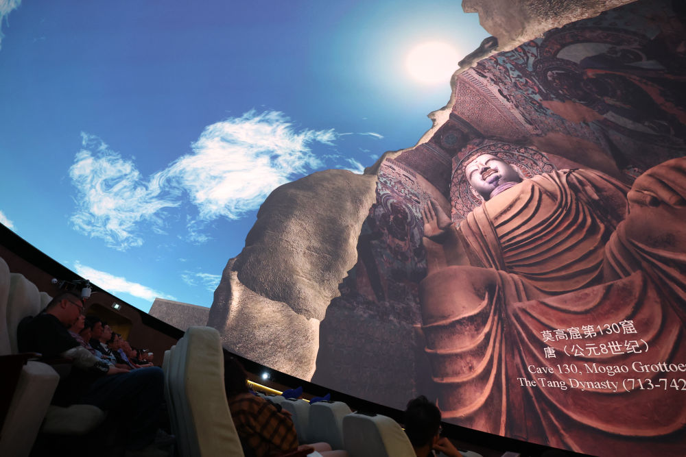 ??2024年9月4日,游客在敦煌莫高窟數(shù)字展示中心觀看球幕電影《夢(mèng)幻佛宮》。