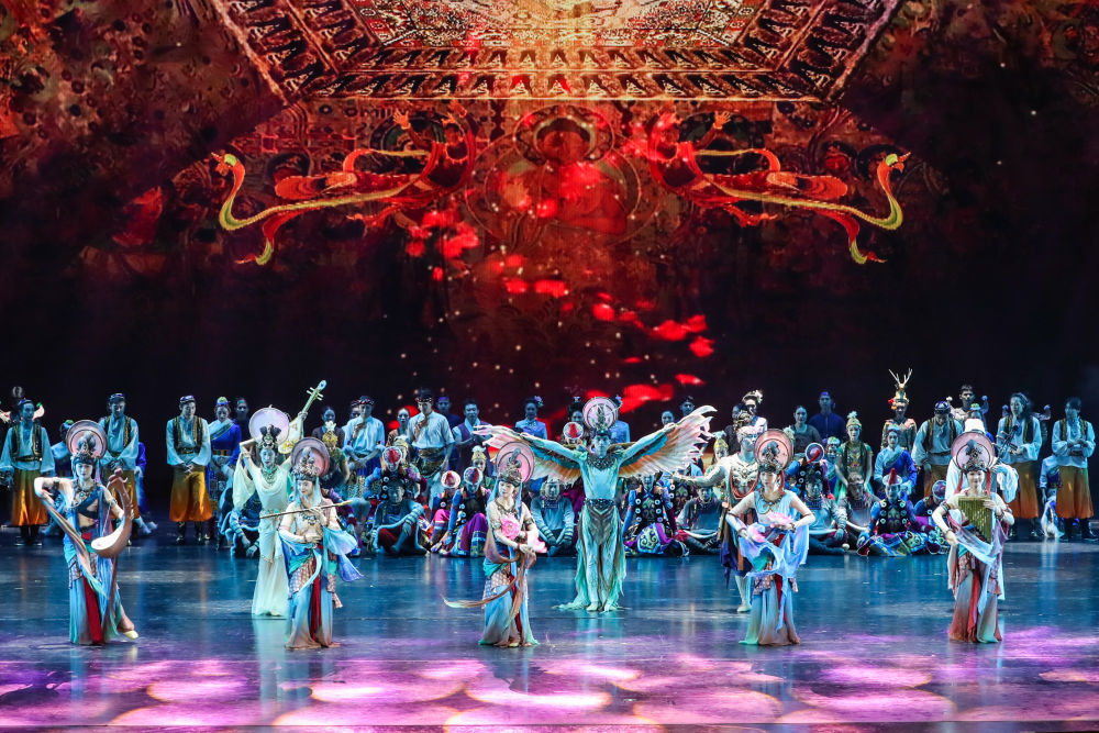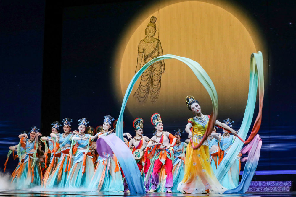 ??2025年9月20日,演員在敦煌大劇院表演新版《絲路花雨》。1979年,大型民族舞劇《絲路花雨》在中國(guó)西北誕生。編創(chuàng)者們從敦煌莫高窟的壁畫(huà)和彩塑中尋找靈感,將壁畫(huà)上凝固了千年的舞姿,轉(zhuǎn)化為動(dòng)態(tài)舞蹈語(yǔ)言。40多年來(lái),《絲路花雨》累計(jì)演出超4000場(chǎng),足跡遍布40多個(gè)國(guó)家和地區(qū),被譽(yù)為“中國(guó)舞劇的里程碑”和“活的敦煌壁畫(huà)、美的藝術(shù)享受”。此次新版歷經(jīng)兩年半創(chuàng)排,通過(guò)復(fù)原與創(chuàng)新對(duì)經(jīng)典藝術(shù)進(jìn)行當(dāng)代詮釋?zhuān)蔑@了中華優(yōu)秀傳統(tǒng)文化的生命力。