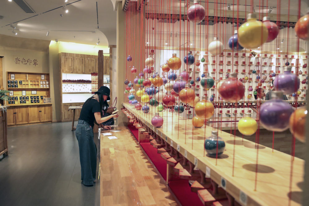 ??2025年5月10日,游客在敦煌文旅新打卡地敦煌印局體驗(yàn)文創(chuàng)印章。