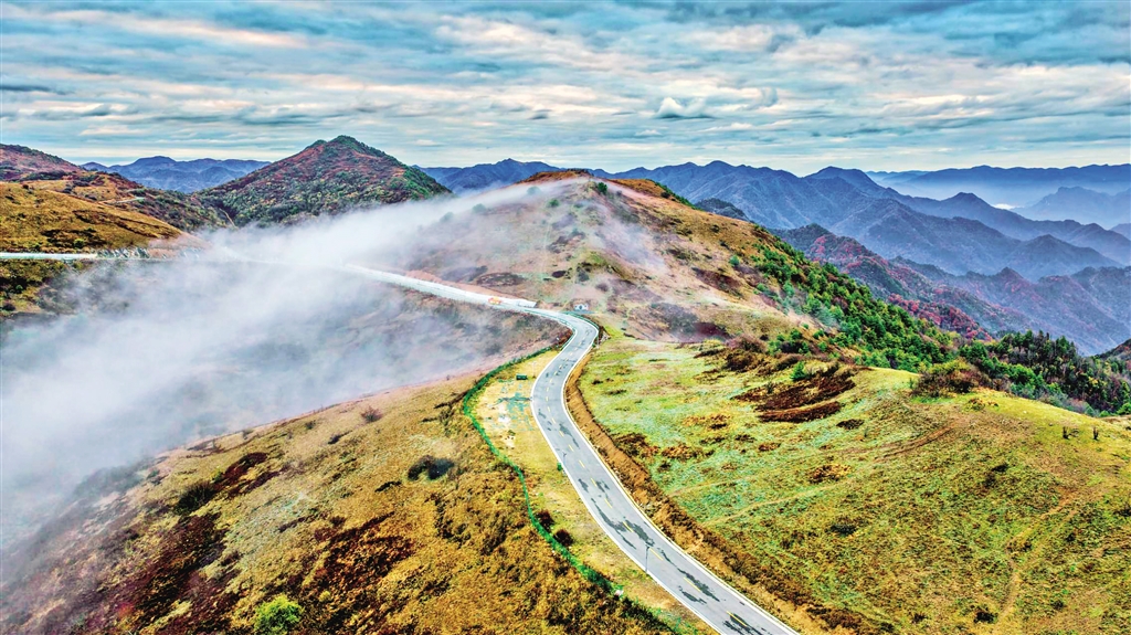 近日,薄霧如紗般漫過平利縣正陽草甸山脊上的盤山道。近年來,當地大力發(fā)展旅游交通,方便更多游客前來領略秦嶺巴山的雄渾壯美。皮勇維 攝