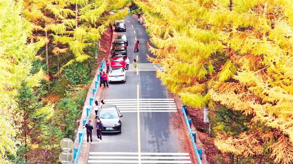 紅葉林蔭道引得游人駐足欣賞