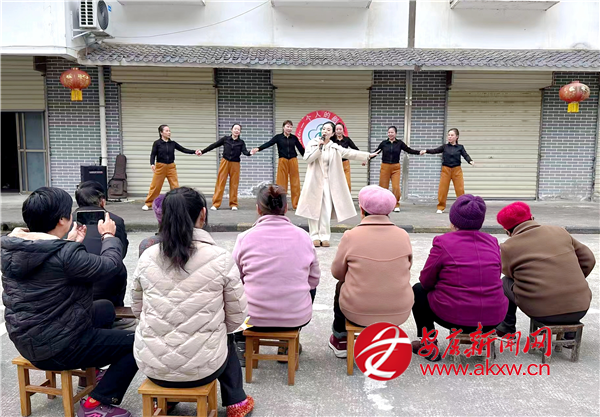 首場(chǎng)活動(dòng)在城關(guān)鎮(zhèn)湯坪社區(qū)拉開(kāi)帷幕。上午9點(diǎn),演出團(tuán)隊(duì)的小巴剛開(kāi)進(jìn)社區(qū)院子,志愿者們就迅速布置起臨時(shí)舞臺(tái)。隨著音樂(lè)聲響起,原本安靜的院子漸漸熱鬧起來(lái),居民們?nèi)齼蓛蓢鷶n過(guò)來(lái)。暖陽(yáng)下,志愿者早就擺好整齊的凳子,等候老人們?nèi)胱?/p>