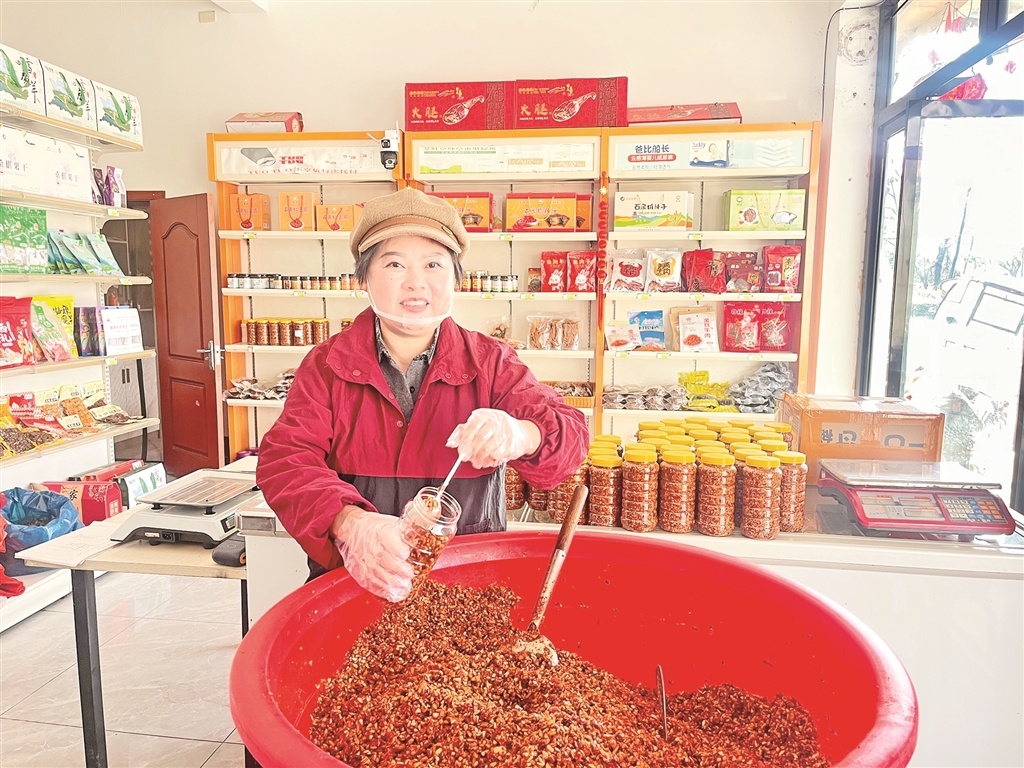 生意有了起色,丈夫的身體也逐漸康復(fù),生活終于重新亮堂起來。作為鎮(zhèn)人大代表,劉小洪深知,一人富不算富,大家富才是真的富。她主動分享直播帶貨經(jīng)驗,帶動周邊村民參與特產(chǎn)加工和網(wǎng)絡(luò)銷售。她優(yōu)先聘請村里的留守婦女和困難家庭來幫忙,手把手教她們技術(shù)。為了保證產(chǎn)品的純正鄉(xiāng)味,她堅持從本村及周邊村采購黃豆、辣椒、野油菜、干豇豆等原材料,平均每年收購約1萬公斤黃豆、2000余公斤辣椒、2000余公斤野油菜及干豇豆,讓鄉(xiāng)親們的農(nóng)產(chǎn)品有了穩(wěn)定銷路,也變成了實實在在的收入。