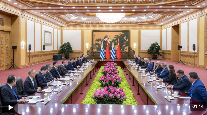 2月3日上午,國家主席習近平在北京人民大會堂同來華進行國事訪問的烏拉圭總統(tǒng)奧爾西舉行會談。