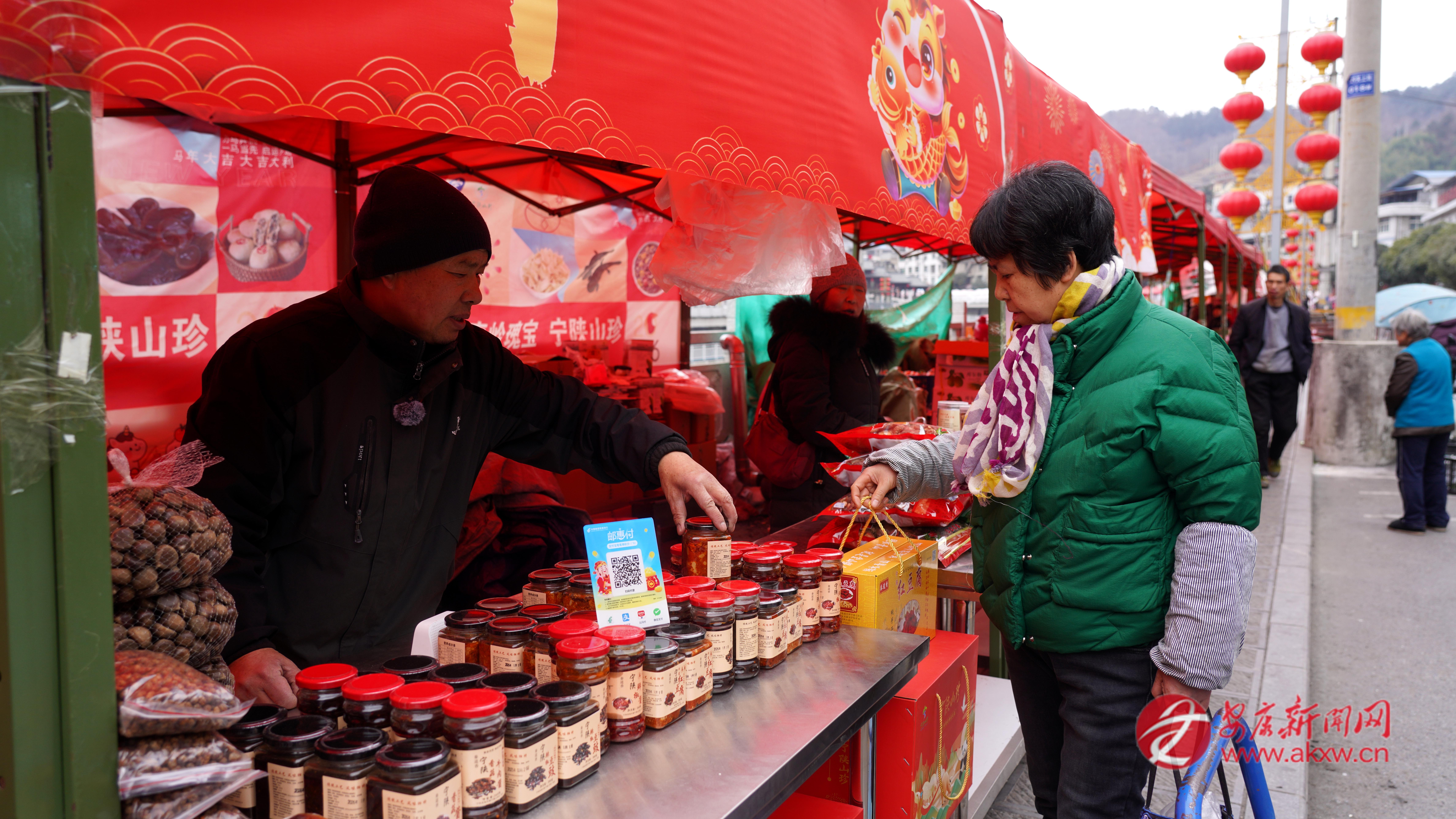 各鎮(zhèn)亦因地制宜打造特色市集。在廣貨街鎮(zhèn)“臘味年貨大集”上,舞獅花船沿街巡游,臘肉夾饃攤前排起長(zhǎng)隊(duì);在四畝地鎮(zhèn)文化廣場(chǎng),餃子熱氣騰騰,鄰里圍坐共話家常;在江口鎮(zhèn),全?;疱佈缦銡馑囊纭@紅火的年集,讓秦嶺小城的新春更有溫度、更有滋味。